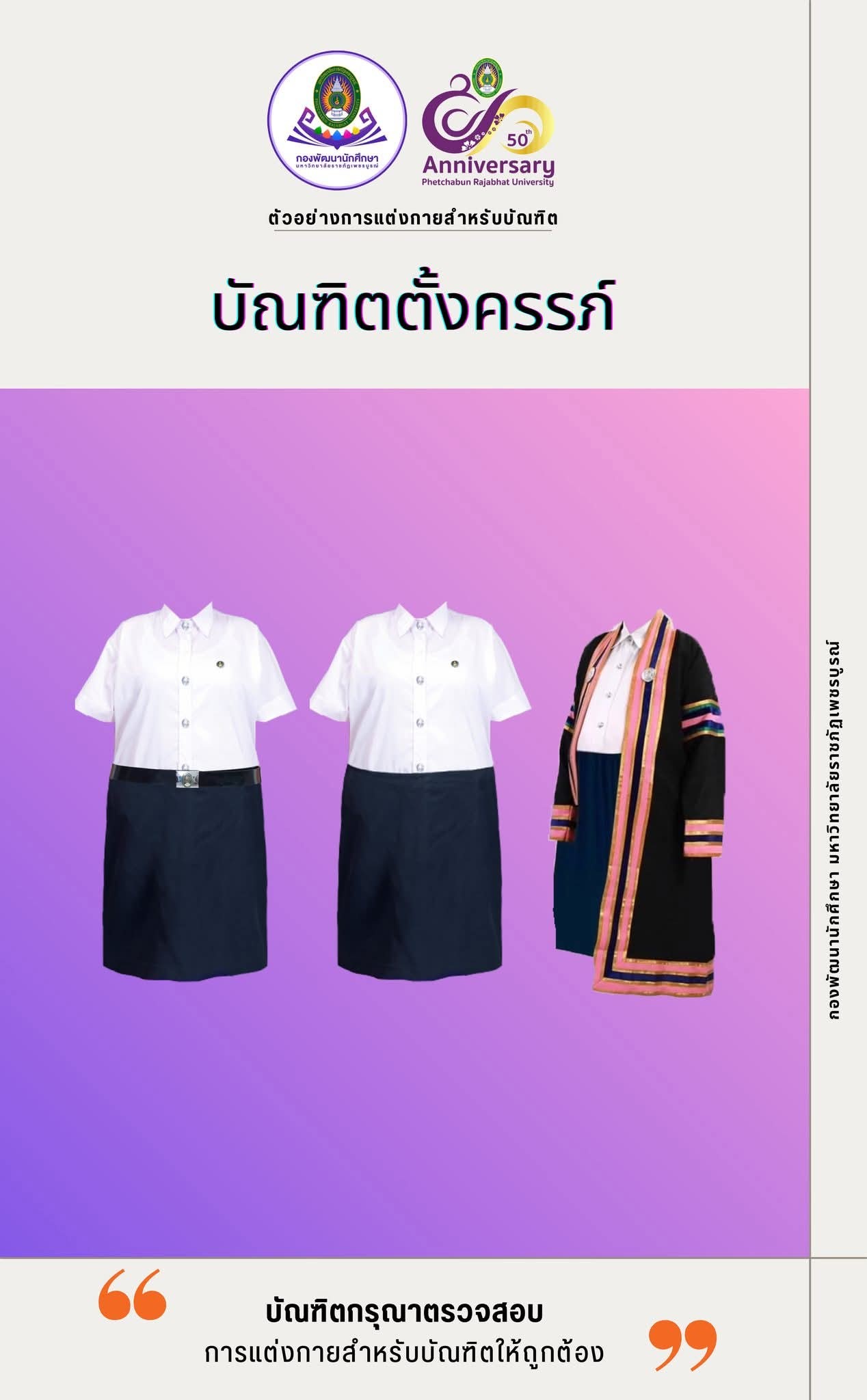 | ตัวอย่างการแต่งกายของบัณฑิต และตัวอย่างชุดครุยแต่ละสาขาวิชา |