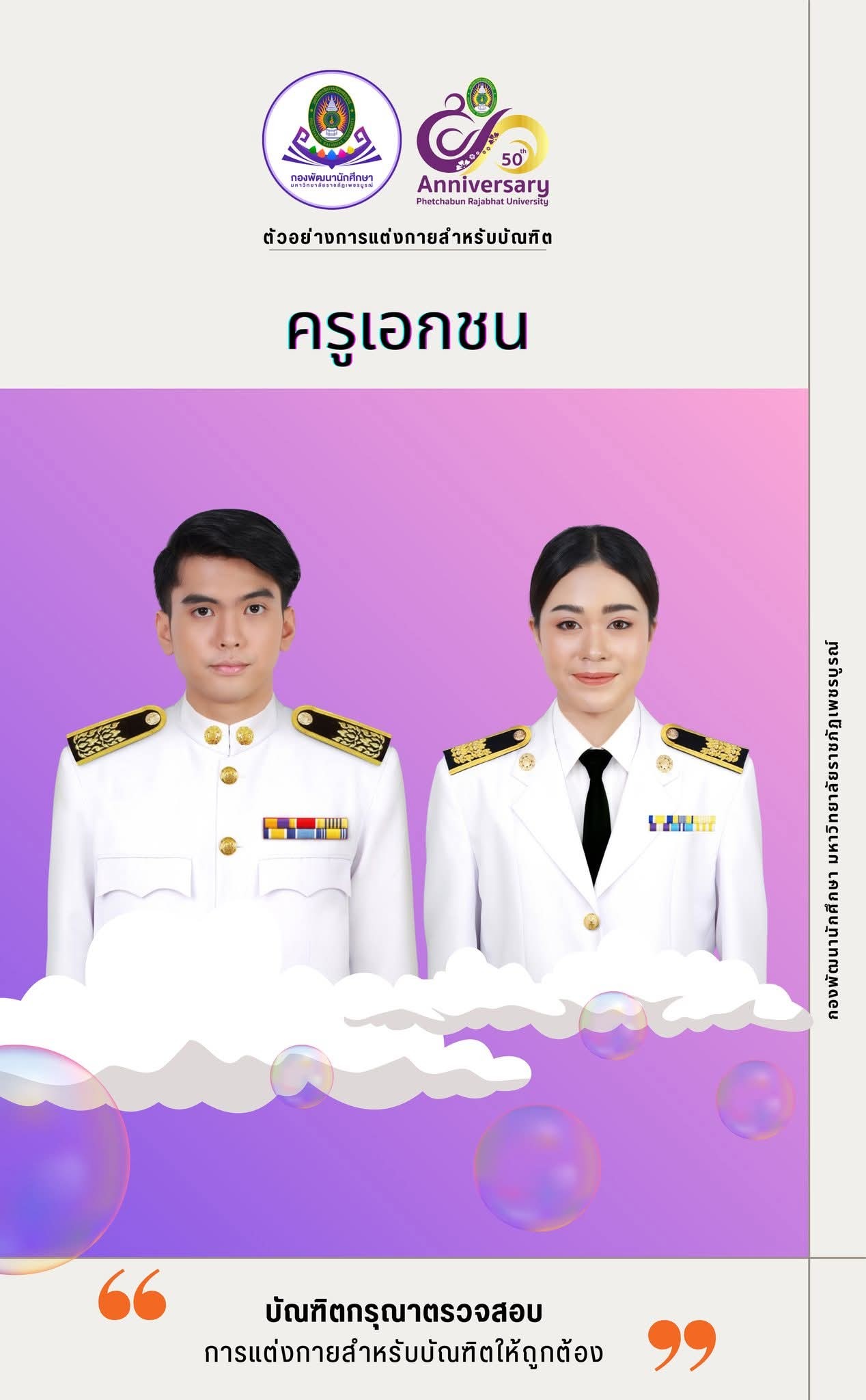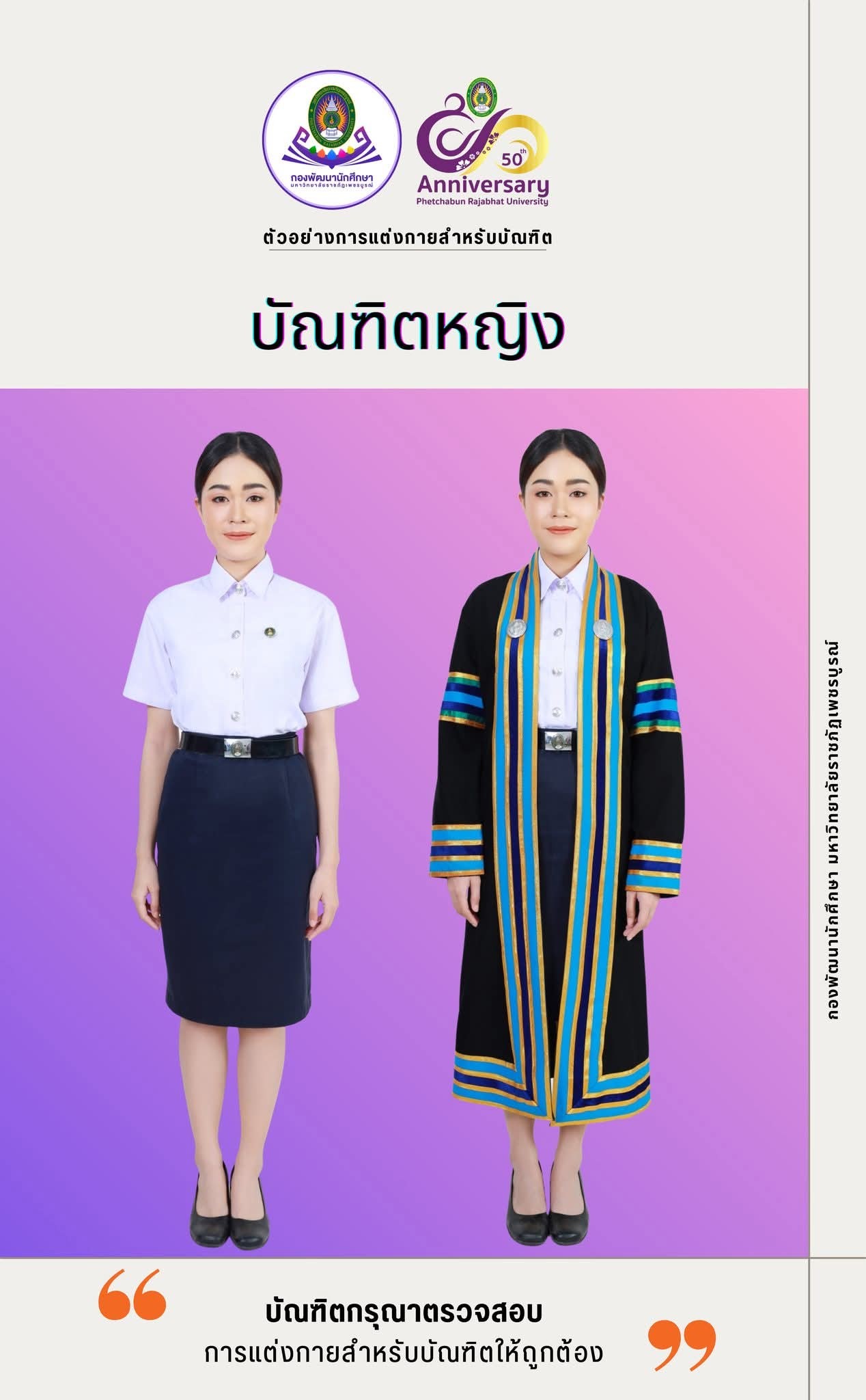 ตัวอย่างการแต่งกายของบัณฑิต และตัวอย่างชุดครุยแต่ละสาขาวิชา