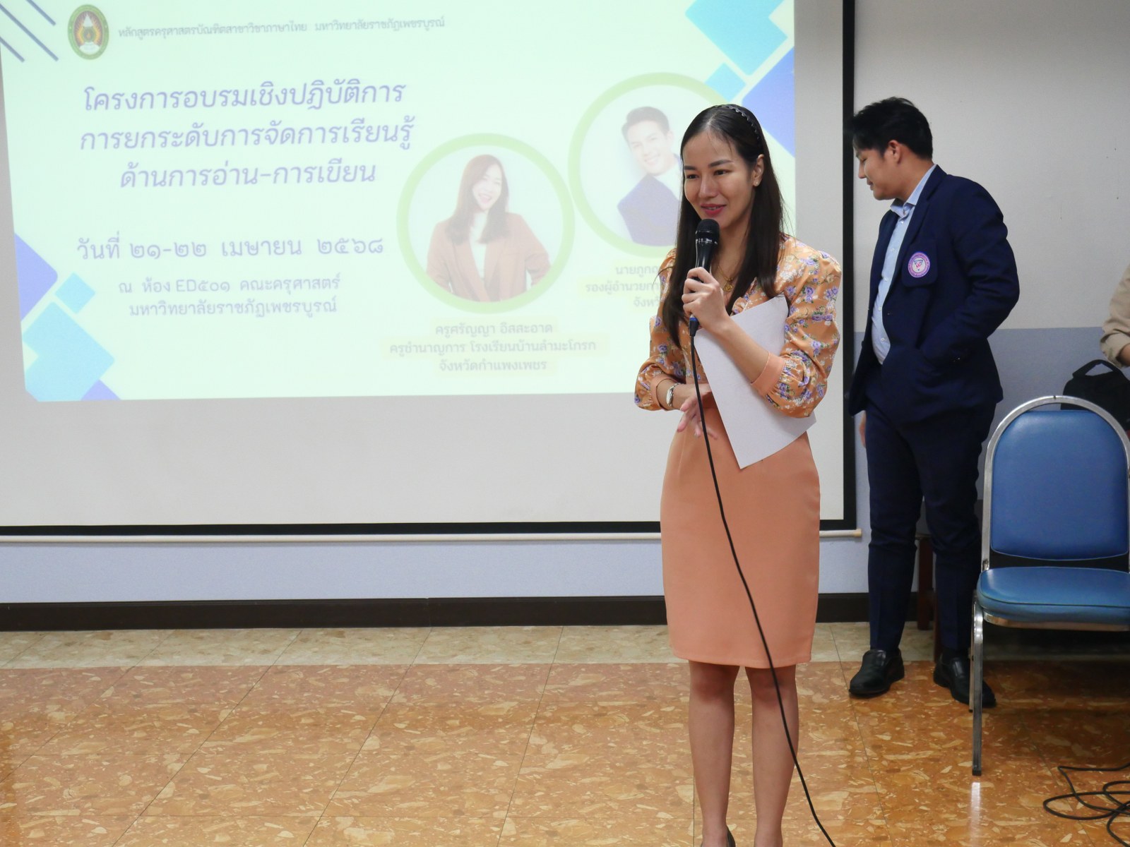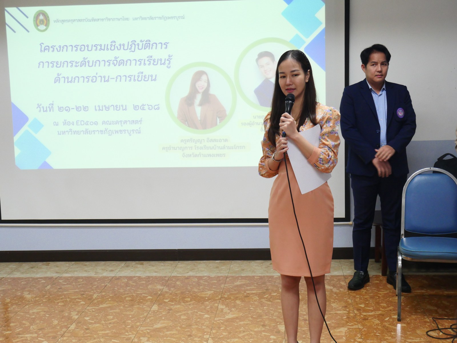 สาขาวิชาภาษาไทย คณะครุศาสตร์ มหาวิทยาลัยราชภัฏเพชรบูรณ์ จัดโครงการอบรมเชิงปฏิบัติการยกระดับการจัดการเรียนรู้ด้านการอ่าน-การเขียน ในวันที่ ๒๑-๒๒ เมษายน ๒๕๖๘ ณ ห้องประชุม ED501 คณะครุศาสตร์ มหาวิทยาลัยราชภัฏเพชรบูรณ์