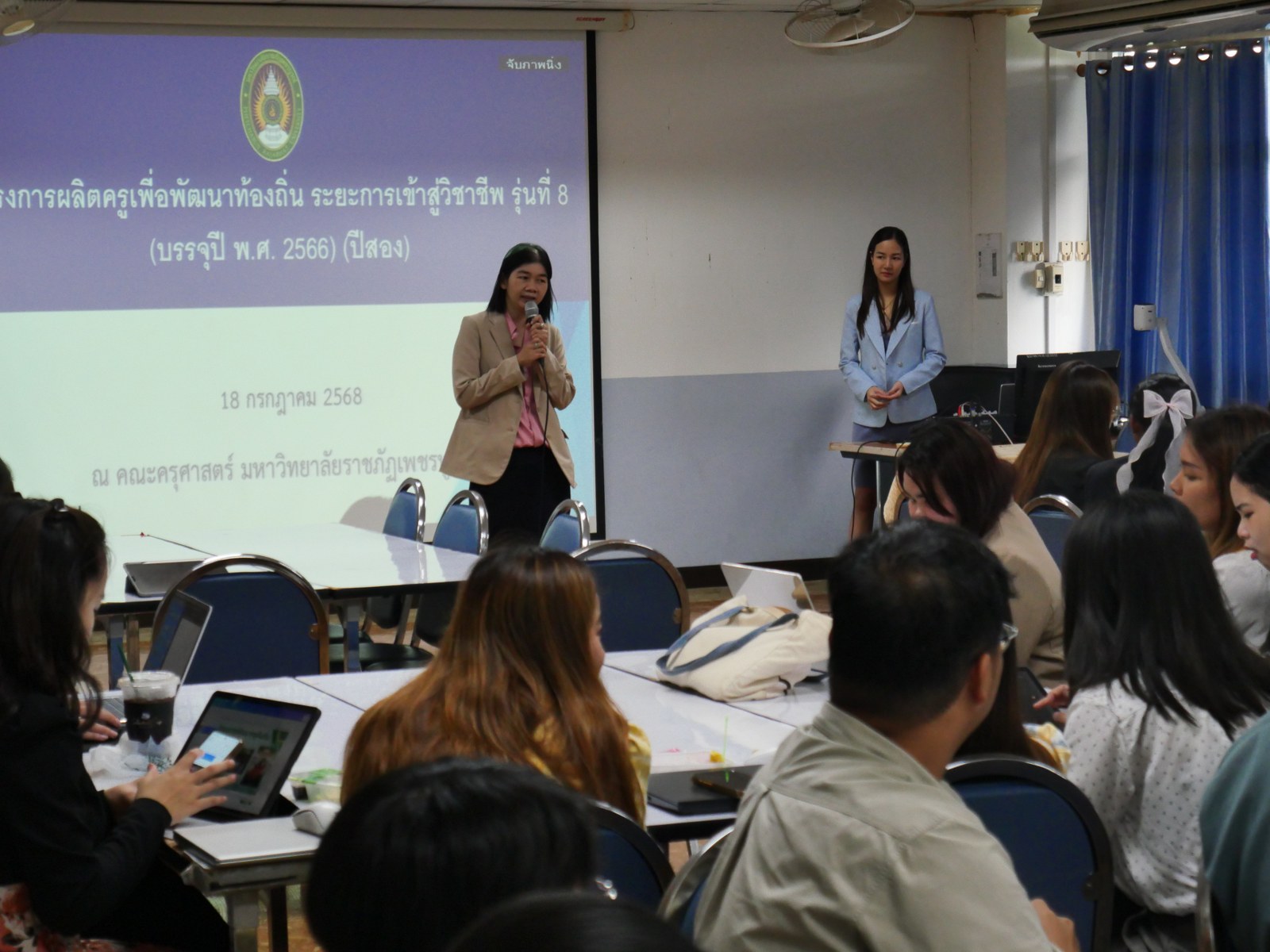 วันที่ 18 กรกฎาคม 2568 คณะครุศาสตร์ จัดโครงการผลิตครูเพื่อพัฒนาท้องถิ่น ระยะการเข้าสู่วิชาชีพ รุ่นที่ 8 (บรรจุปี พ.ศ. 2566) (ปีสอง) โดยมี ผู้ช่วยศาสตราจารย์ ดร.สุปราณี พิศมัย รองคณบดี ฝ่ายวิชาการ คณะครุศาสตร์ เป็นประธานเปิดโครงการ ณ ห้องประชุม ED501 คณะครุศาสตร์ มหาวิทยาลัยราชภัฏเพชรบูรณ์